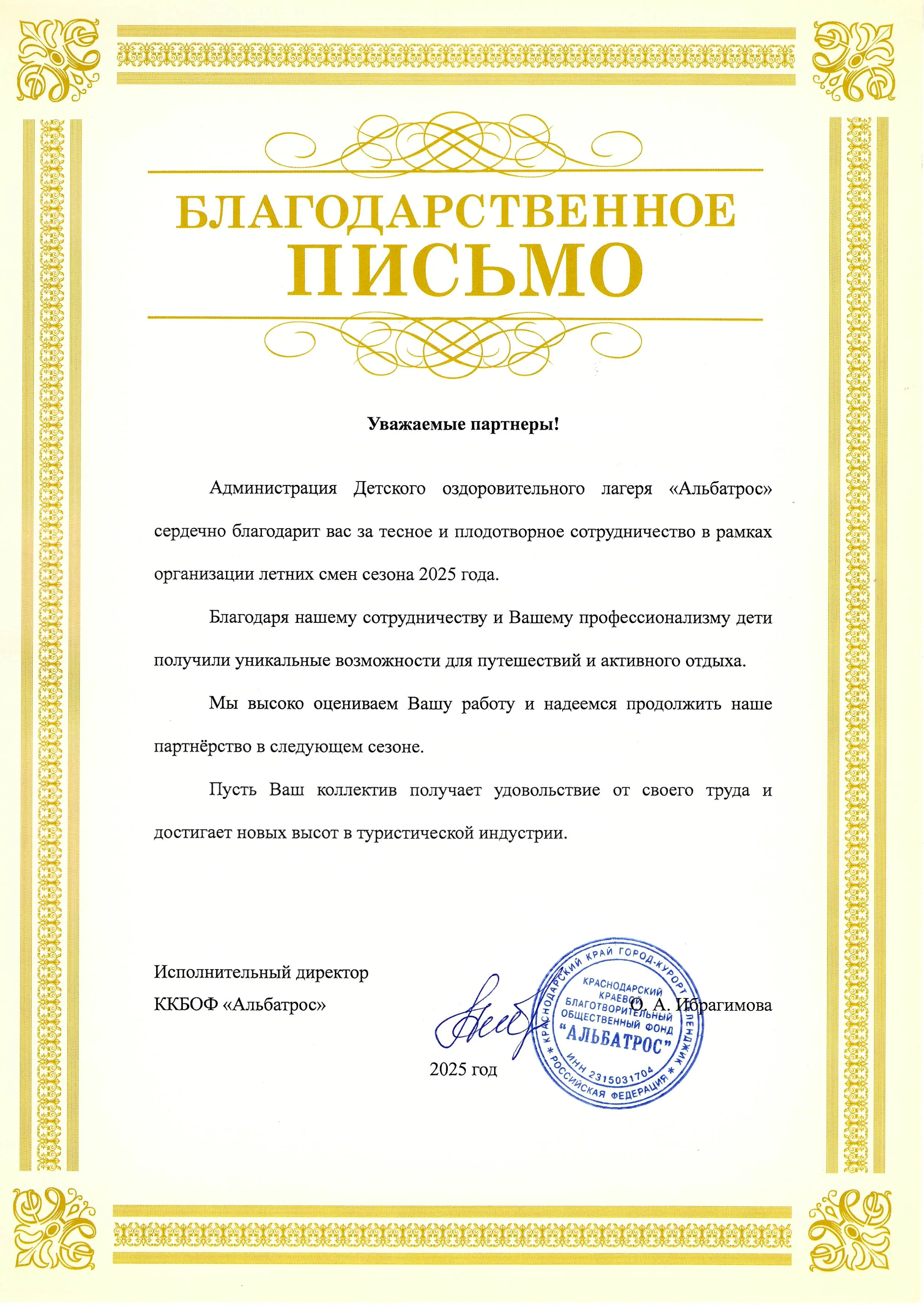 Мы гордимся командой профессионалов, работающих над созданием высококачественного отдыха. Каждый сотрудник, будь то менеджер, сопровождающий или педагог, вкладывает душу в свою работу, стремясь создать лучшие условия для здоровья и радости детей.