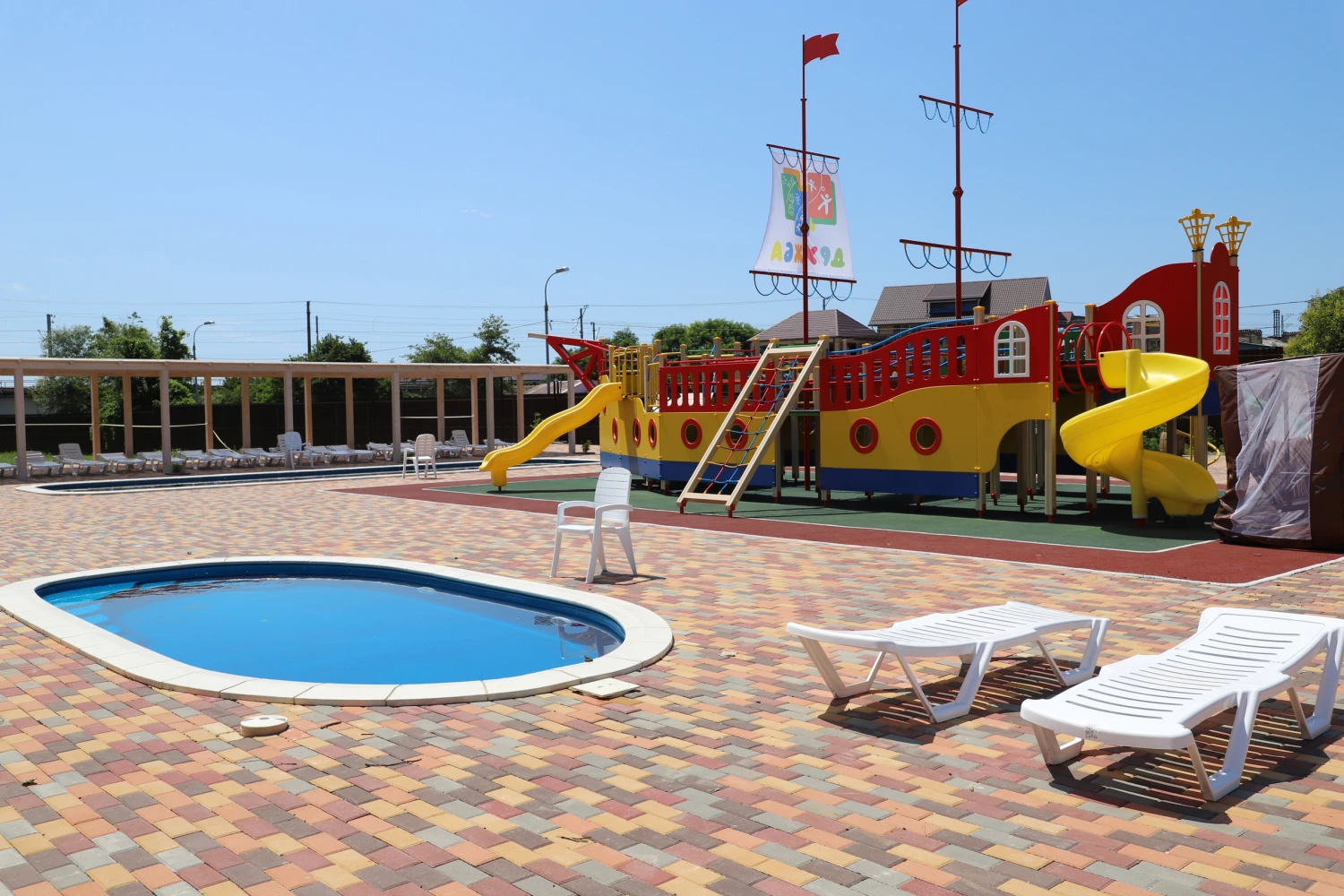 - бассейны: 1 бассейн (25*12,5 м на 6 дорожек), 1 бассейн (3*6м), 3 открытых бассейна (4*12м), зона вокруг бассейнов оборудована навесами, лежаками, душевыми и туалетами;