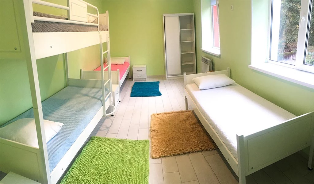 Дети размещаются в 2-4 местных номерах с удобствами на этаже (раздельные индивидуальные комнаты для мальчиков и девочек, душевые, раковины, сан. узлы). В номерах: кровати, тумбочки, шкаф.