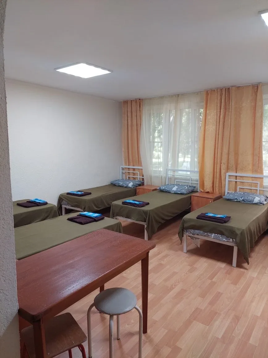 В номерах: кровати, тумбочки, зеркало, встроенный шкаф, стол со стульями, установлены пластиковые окна, имеются москитные сетки, санузел. Горячая и холодная вода - круглосуточно. Смена белья и полотенец 1 раз в 7 дней, плажное полотенце иметь с собой. Влажная уборка производится горничными 2 раза в день. На каждом этаже установлены кулеры с питьевой водой, оборудованы места для зарядки телефонов.