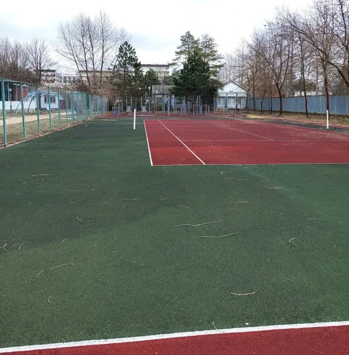 - площадки для игр в баскетбол (28х15), волейбол (18х9), бадминтон (13х6), большой теннис (18х36) — покрытие прорезиненное;