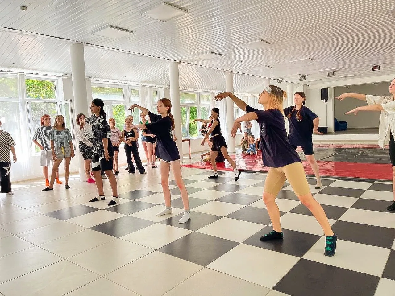 - крытый танцевальный зал с зеркалами и балетным станком;