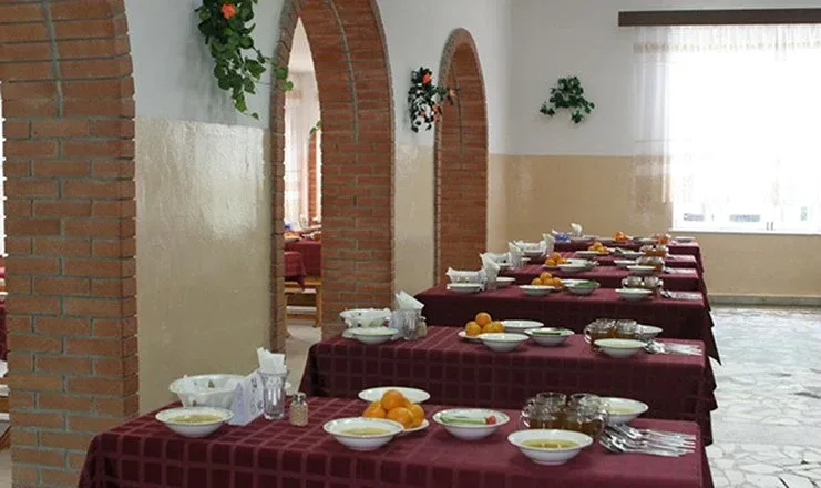 Светлая и просторная столовая, укомплектованная всем необходимым современным оборудованием и кондиционерами, обслуживание — официантами.