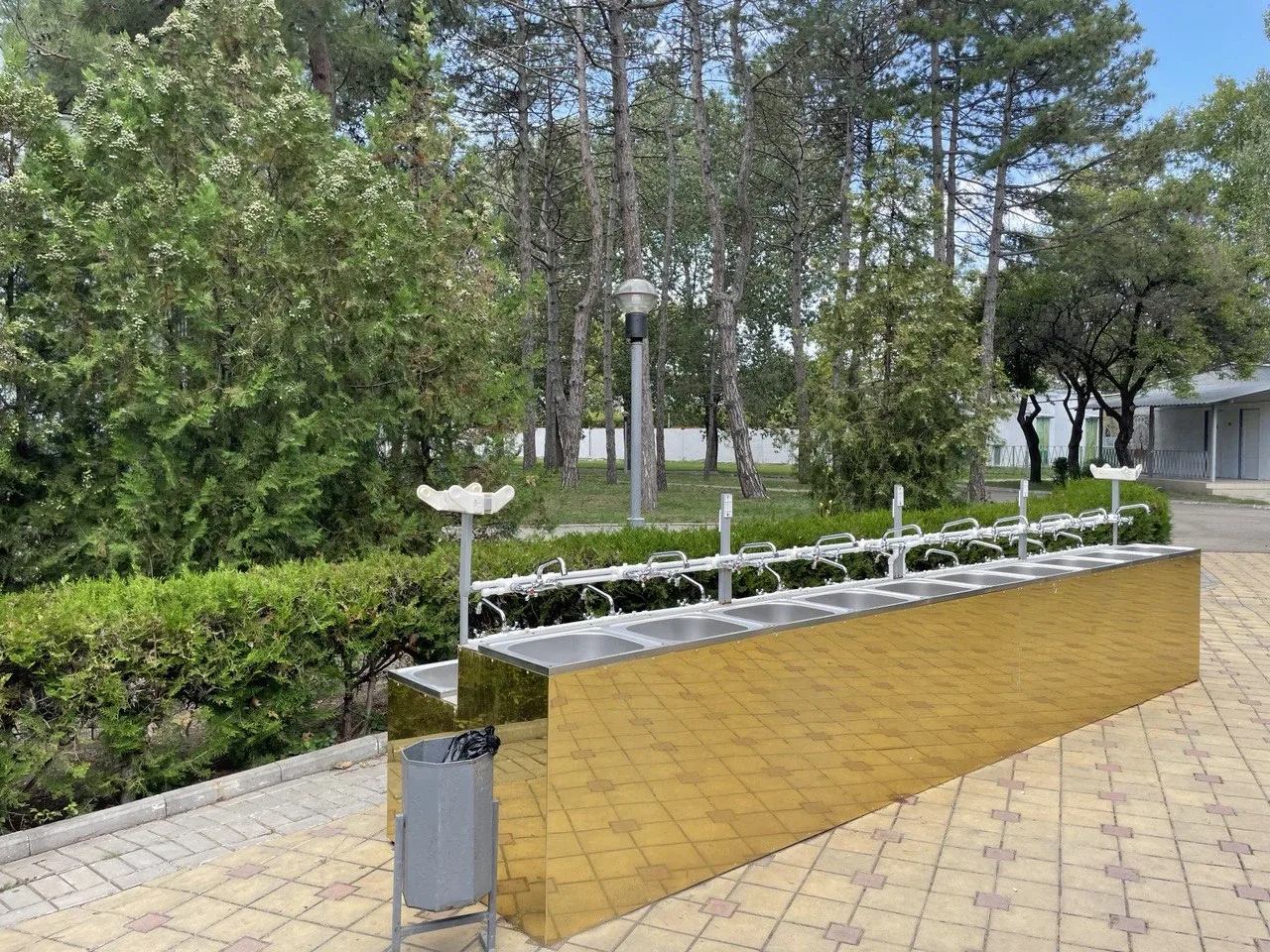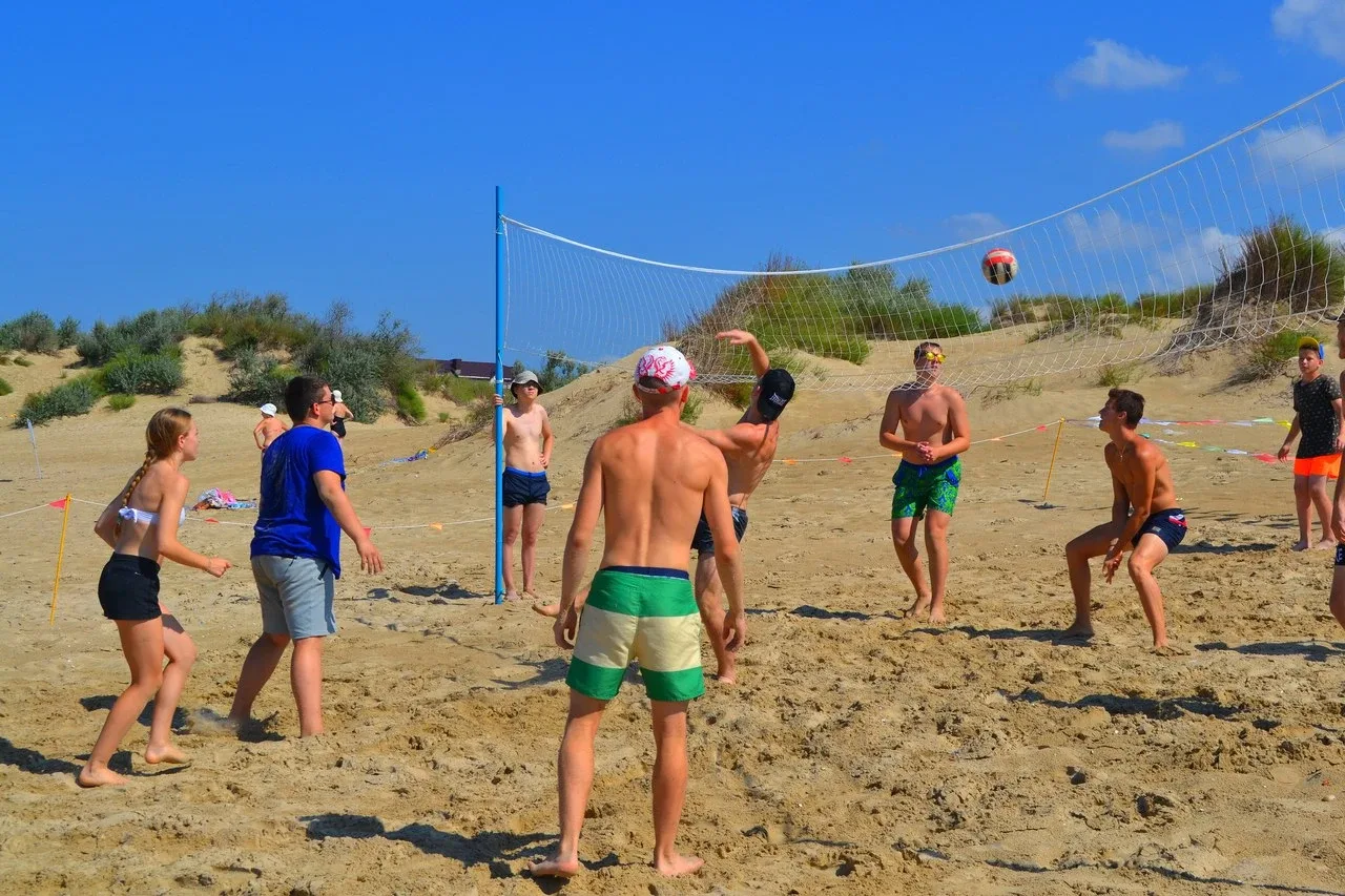 Пляж собственный, песчаный, в 200 м от лагеря.