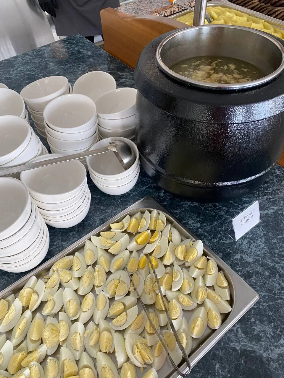 Пятиразовое питание порционное с элементами «шведского стола», проходит в двухэтажной кондиционированной столовой, обслуживание официантами.