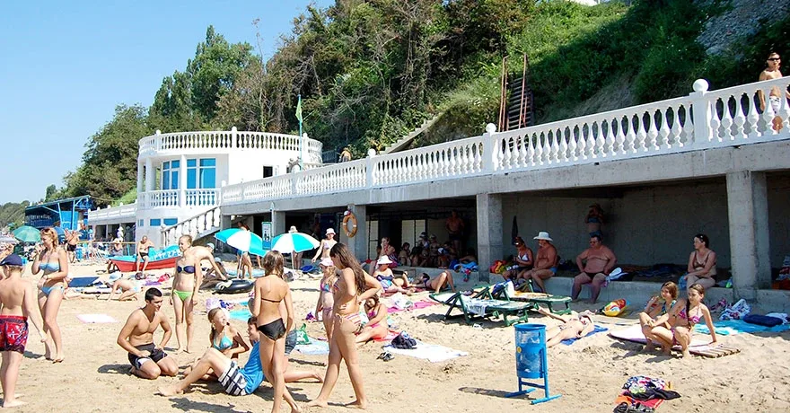 Пляж охраняется, оборудован шезлонгами, кабинками для переодевания, туалетом, аэрариями, медпунктом.