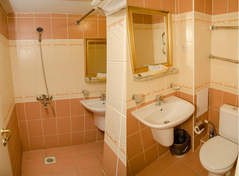 - в основном корпусе по 3-4 человека в номерах «стандарт» с удобствами (душ, туалет, умывальник).