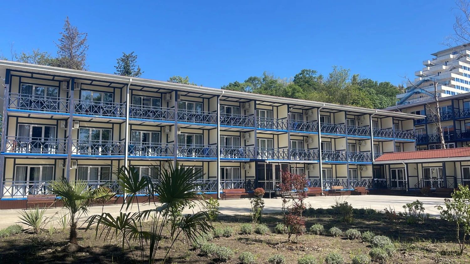 - в новых корпусах по 3 человека в номерах «комфорт» с удобствами (душ, туалет, умывальник, балкон, кондиционер)