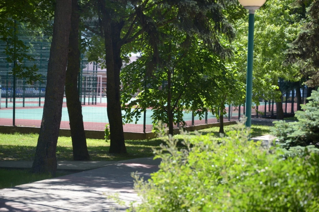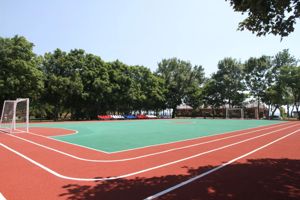 - универсальная спортивная площадка (поле для мини-футбола (47*33 м), волейбольная и баскетбольная площадки (16*36 м), теннисный корт (14*36 м);