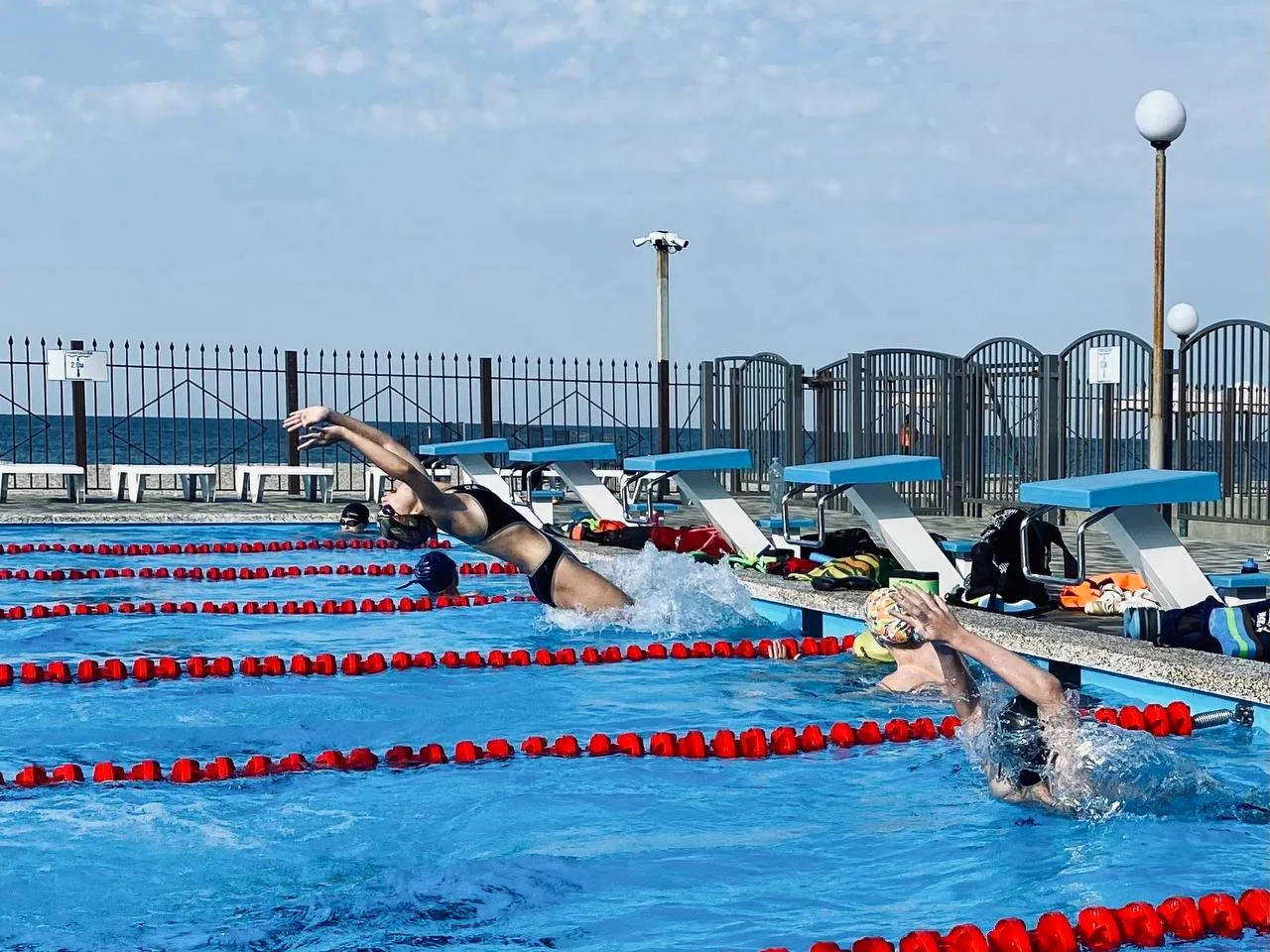 - бассейн №2 размером 25х17 м без подогрева для занятий спортом, глубиной 2 м, состоящий из 6 дорожек, стартовых тумб; вода в бассейне пресная. Предоставляются надувные ворота для игры в водное поло;