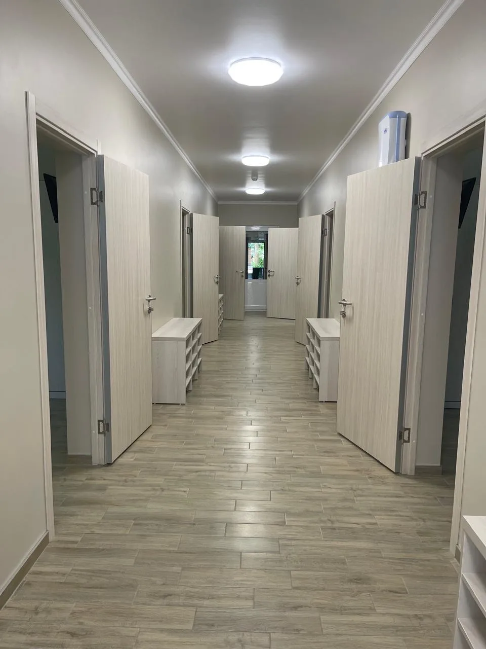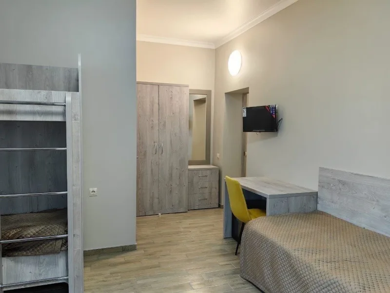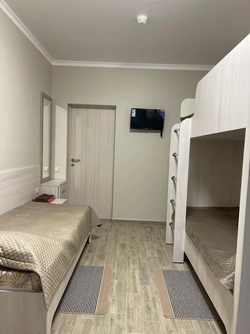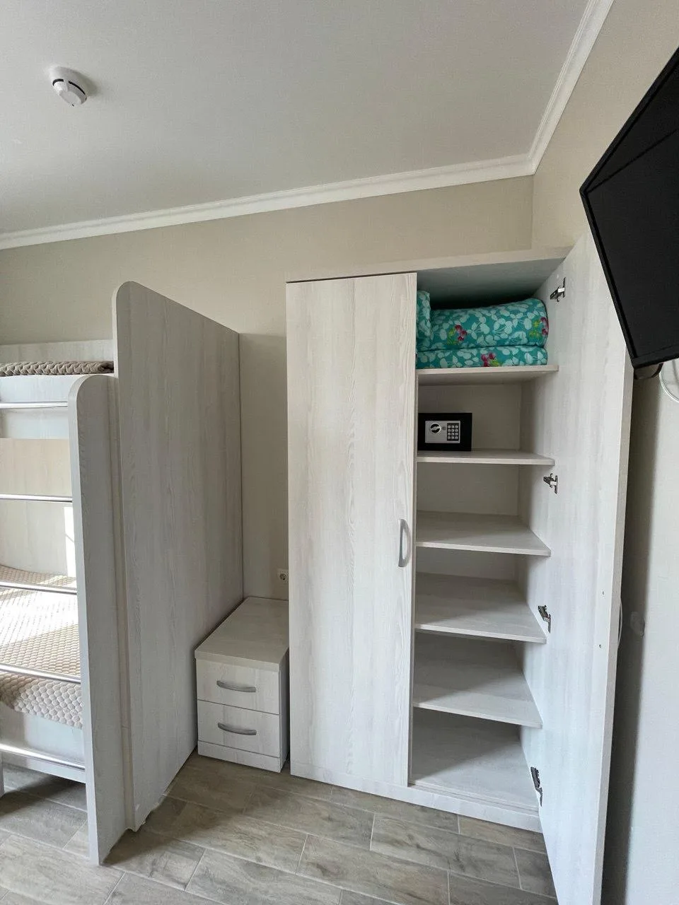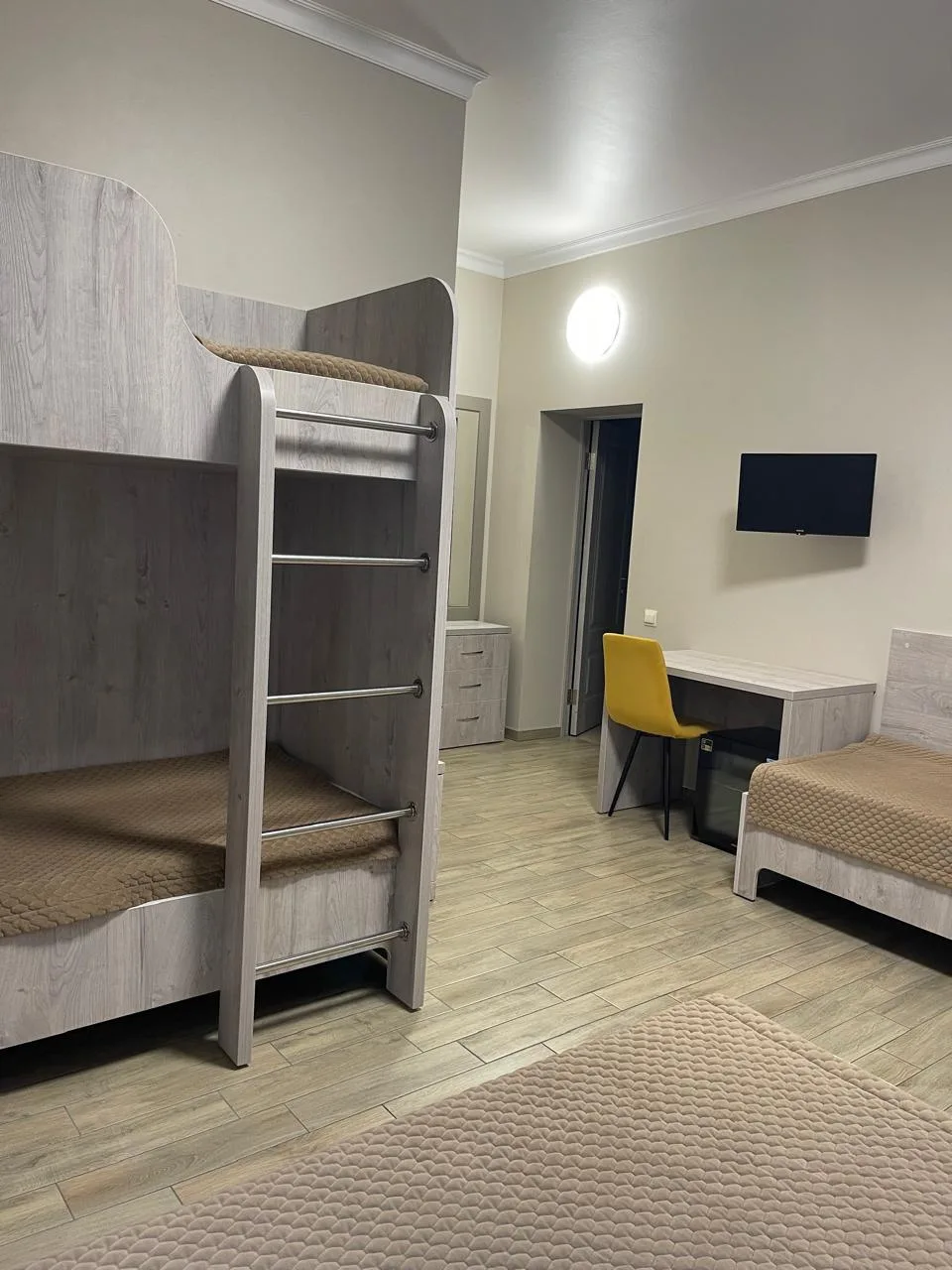 В номерах: кровати с ортопедическими матрасами, в каждой комнате - по одной 2-ярусной кровати; шкаф, тумбочки, телевизор, холодильник, стол, стул, сейф с электронным кодовым замком. В 2024-2025 годах проведен дизайнерский капитальный ремонт всего номерного фонда лагеря.