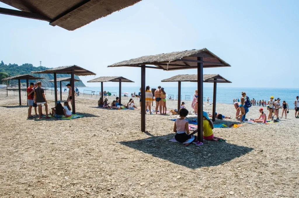 На пляже: медицинский пункт, спасательная служба, кулер с питьевой водой, душевые, кабины для переодевания, теневые навесы, система видеонаблюдения.