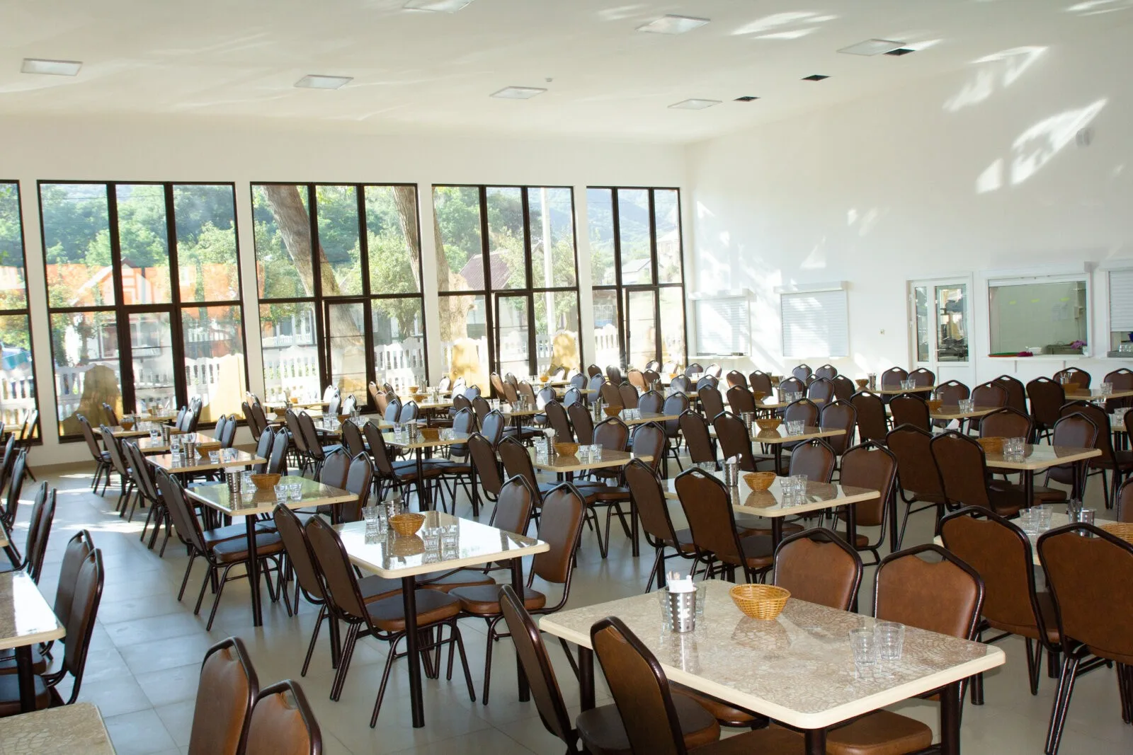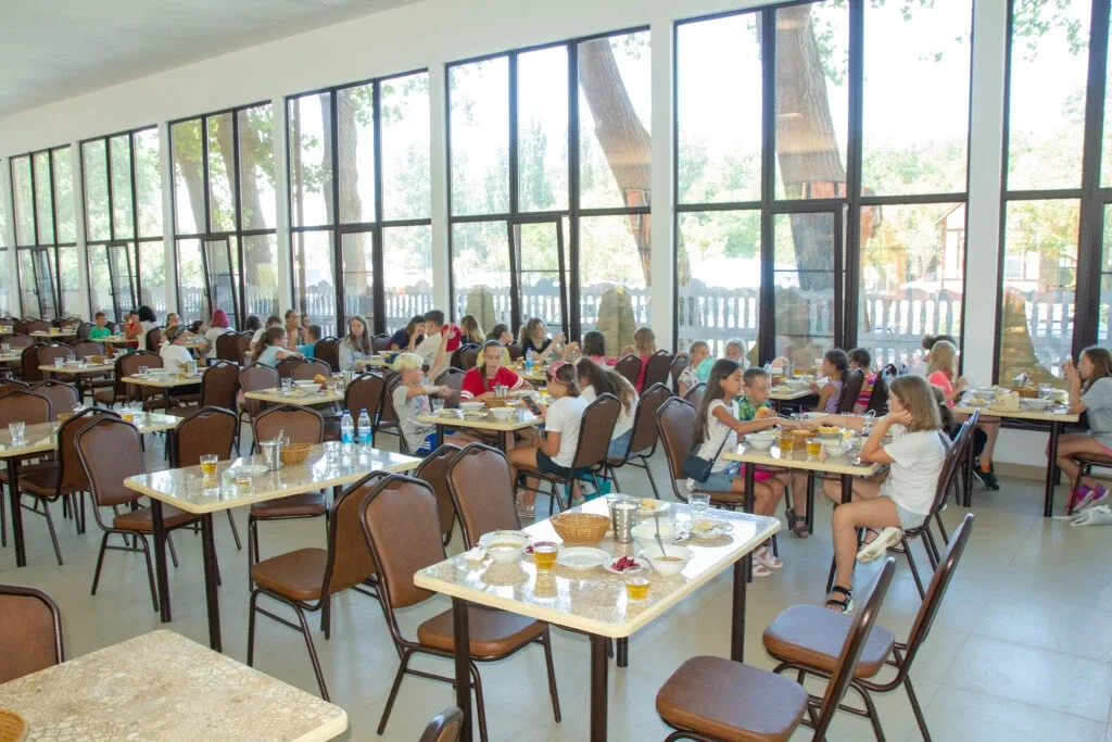 Самые свежие продукты только от проверенных кубанских поставщиков. Меню составляются под контролем специалистов-диетологов. Столовая оборудована кондиционерами, имеет зал на 350 посадочных мест, обслуживание — официантами.