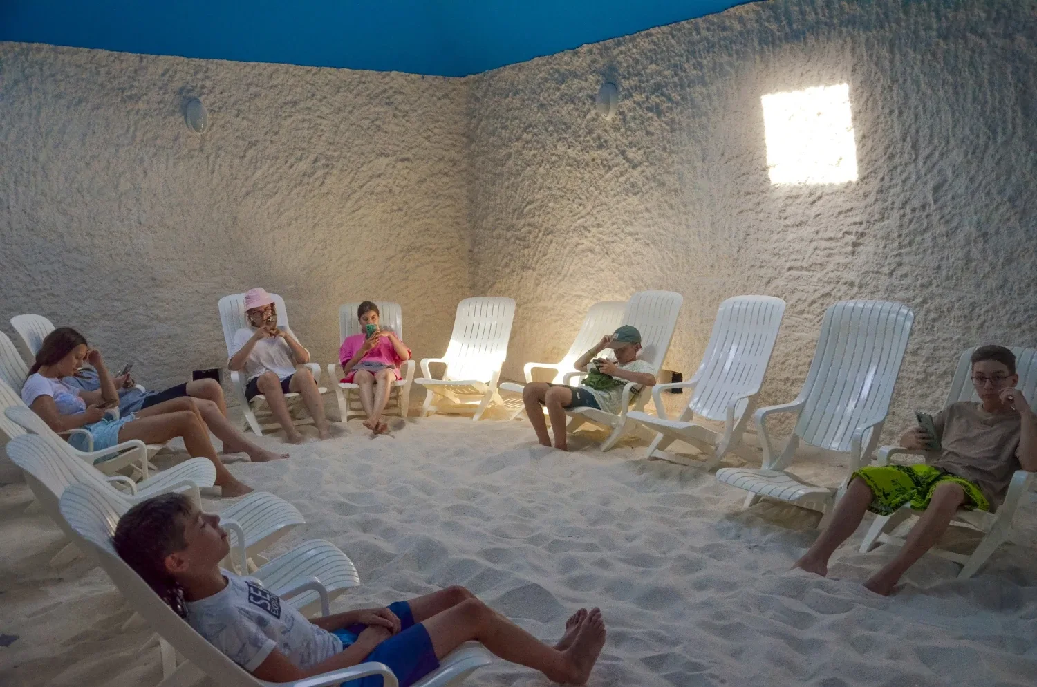 Территория комплекса ограждена и круглосуточно охраняется, в ночное время освещена. Видеонаблюдение (120 камер) охватывает весь периметр, в том числе зоны купания.