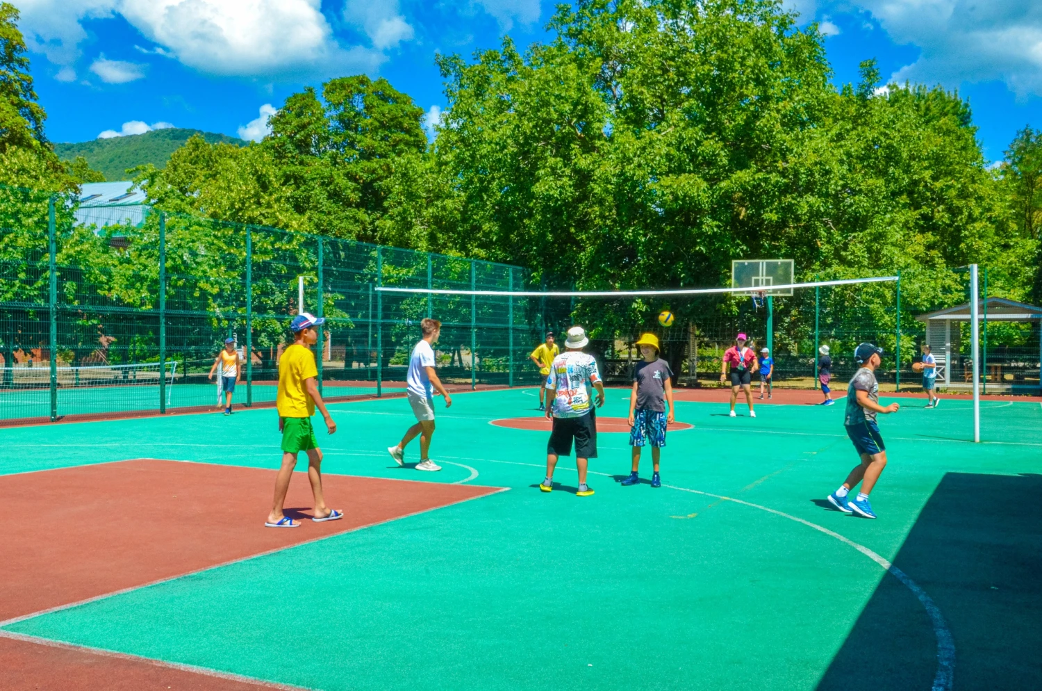 Спортивная инфраструктура лагеря – это большой комплекс, который объединяет футбольное поле, баскетбольные и волейбольные площадки.