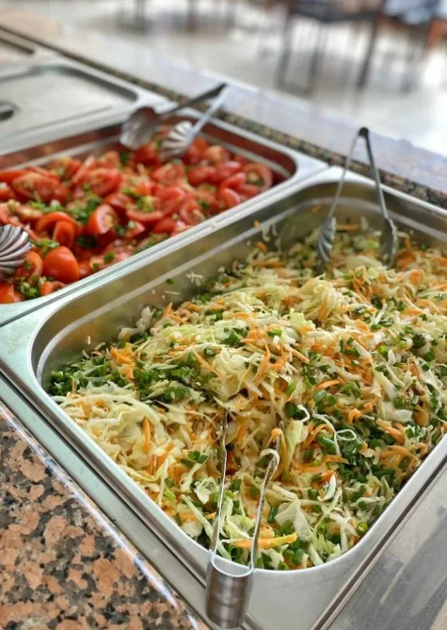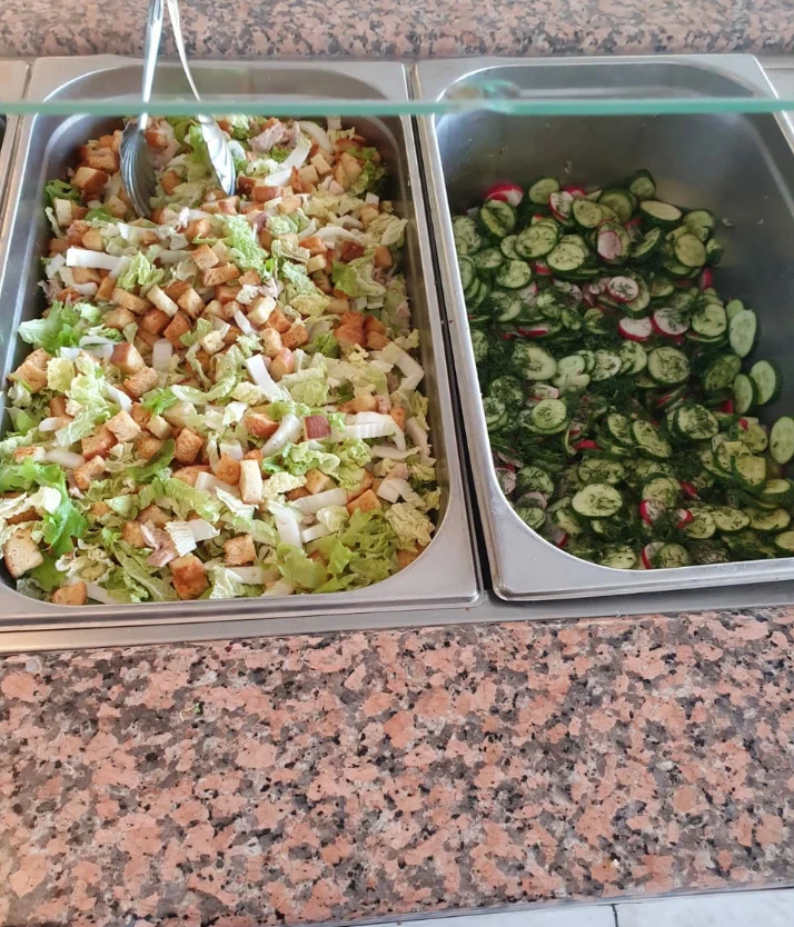 Пятиразовое: завтрак, обед, ужин по системе «шведский стол», полдник и сонник — порционные. В рационе — разнообразные блюда: мясные, рыбные, свежая выпечка, йогурты.