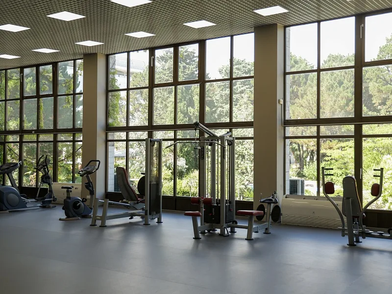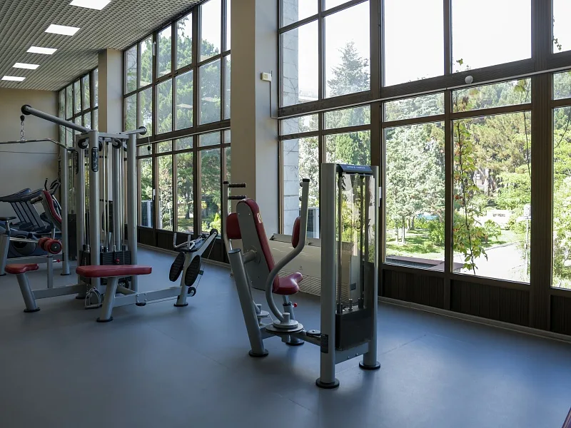 - спортивный зал с тренажерами (228 кв. м., ковровое покрытие, татами);