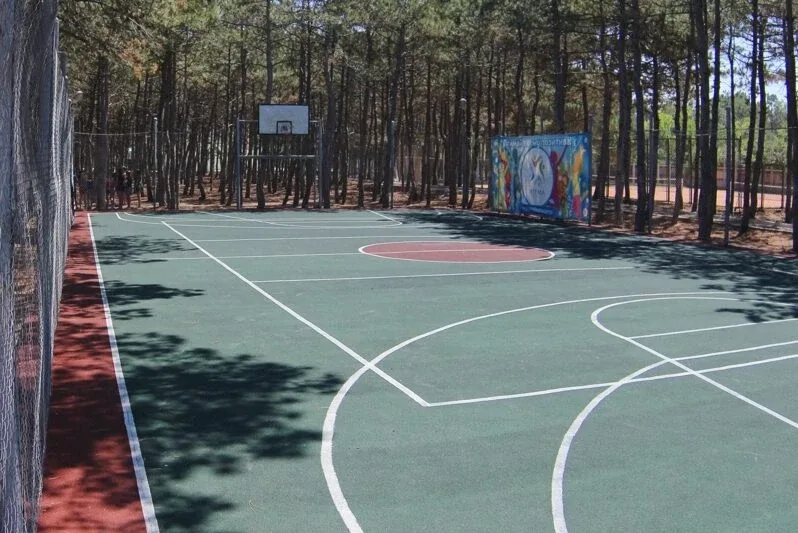 - универсальная спортивная площадка для игры в мини-футбол, волейбол, баскетбол (14,4*27,8, покрытие — резиновая крошка);