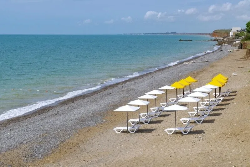 Пляж собственный песчано-галечный в 200 м от пансионата, оборудован лежаками, зонтиками, раздевалками и биотуалетами. Акватория купания огорожена буйками. Работает спасательная служба.